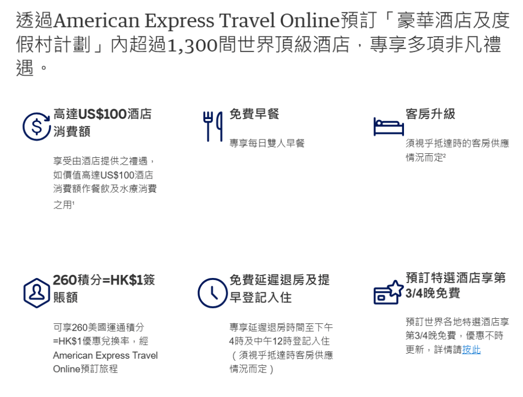 - 使用America Express Travel預訂酒店或租車有高達$1,100回贈
